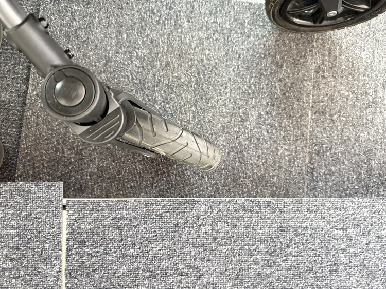 System składania może być obsługiwany jedną ręką, dzięki czemu w łatwy i szybki sposób wózek składa się do kompaktowych rozmiarów. Ponadto wózek po złożeniu samoczynnie stoi, co znacznie ułatwia jego przechowywanie np. w mieszkaniu. W rączce umieszczono uchwyt ułatwiający przenoszenie złożonego wózka.
