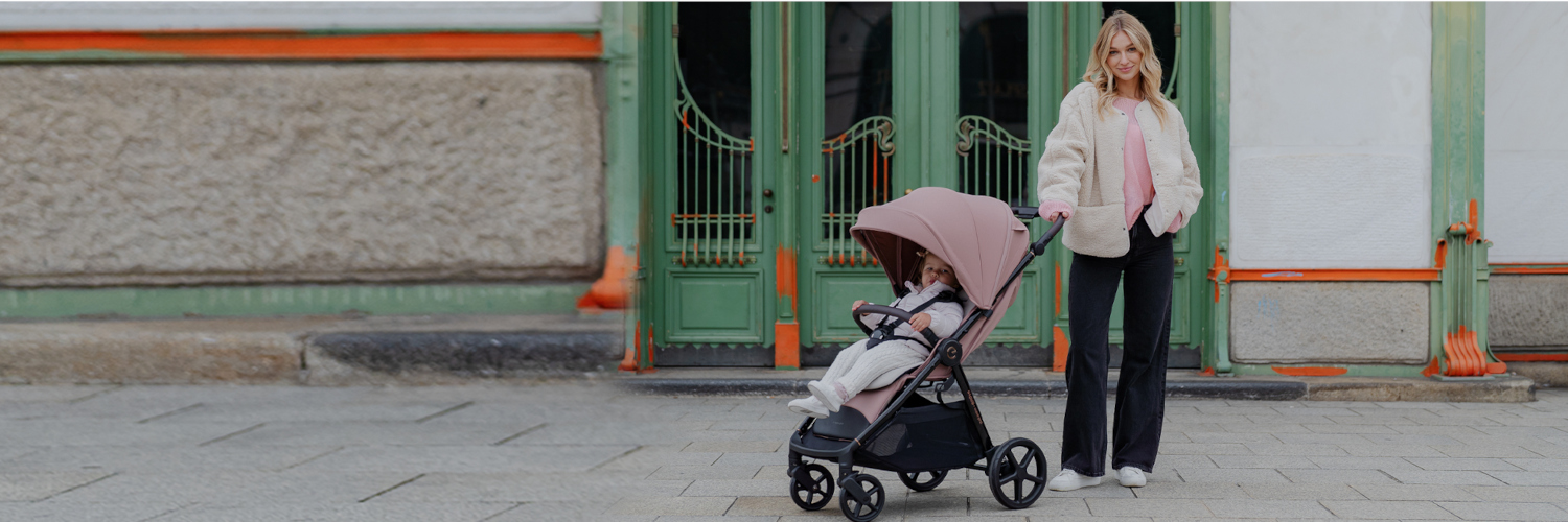 Czarna, błyszcząca rama z subtelnymi miedzianymi akcentami przyciąga wzrok i nadaje wózkowi elegancji. Brązowa rączka z ekoskóry jest przyjemna w dotyku i poprawia pewność chwytu. Tkanina jest lekka, trwała, z hydrofobową powłoką i filtrem UV50+, więc chroni przed deszczem i słońcem. Całość dopełniają modne, stonowane kolory, które długo pozostają „jak nowe”. Espiro Wave PRO to modna spacerówka dziecięca, idealna jako wózek dla chłopca i dziewczynki.
