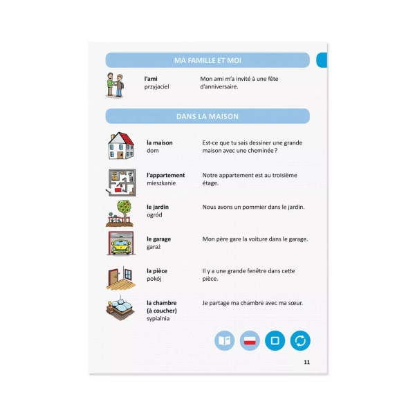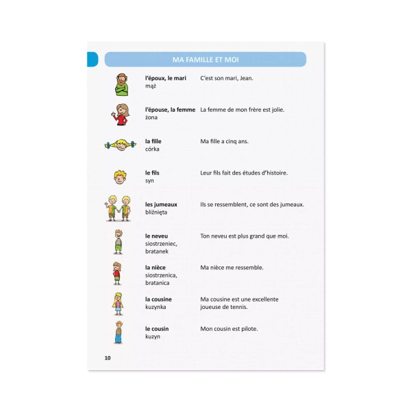 Słowa są przedstawione za pomocą obrazków, aby można było je łatwiej zapamiętać. Na ostatnich stronach książki jest także alfabetyczny spis haseł ułatwiający wyszukiwanie.