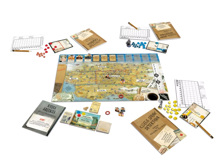 „Detektyw. Miasto Aniołów” przenosi graczy do mrocznego i brutalnego Los Angeles lat 40. XX wieku. To klimatycznie zilustrowana kryminalna gra planszowa pełna spraw do rozwiązania, tajemnic do odkrycia i kłamstw do zdemaskowania. Większość graczy wcieli się w role detektywów wydziału zabójstw policji Los Angeles, śledczych tak głodnych sukcesu, że aby zamknąć sprawę, nie zawahają się przed zastraszaniem podejrzanych, ukrywaniem dowodów czy dawaniem łapówek kapusiom. Jeden gracz wcieli się w rolę Krętacza, którego głównym celem jest spowalnianie śledztw oraz mydlenie oczu detektywom.