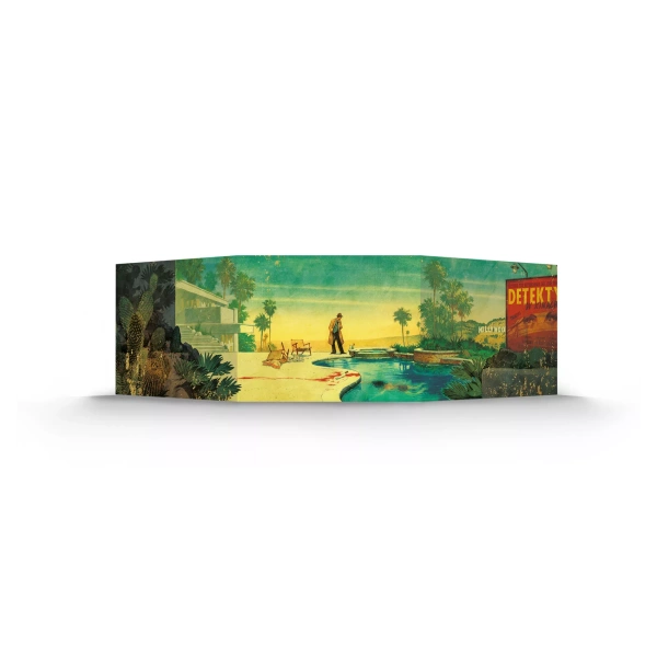 Składany ekran do gry „Detektyw. Miasto Aniołów” ułatwia graczowi, który wcielił się w rolę Krętacza, ukrywanie przed detektywami jego niecnych działań, knowań i tajnych notatek.