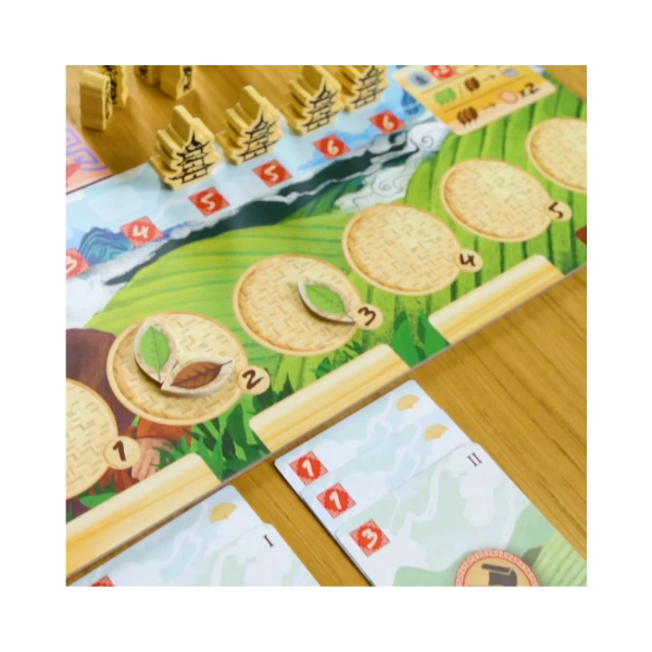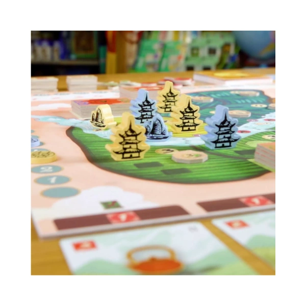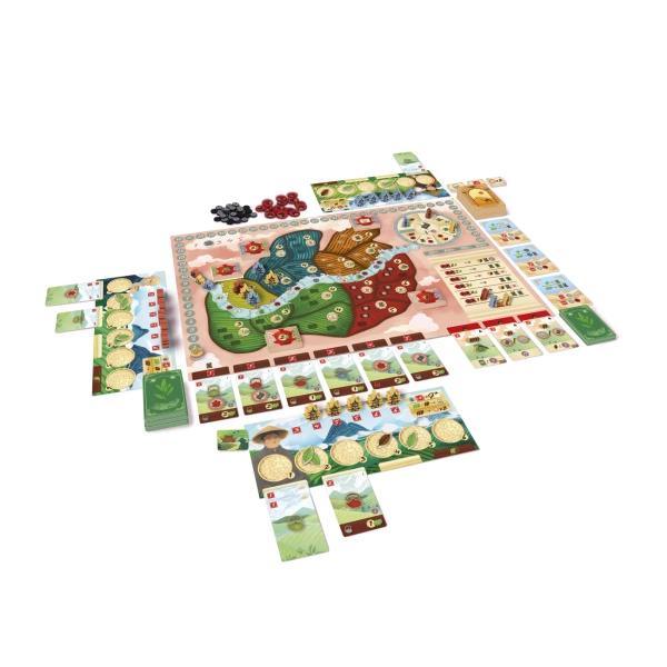 Zawartość: 4 planszetki graczy, 28 pagód, 32 pionki robotników, 4 pionki łodzi, 4 znaczniki punktów zwycięstwa, 44 karty początkowe, 1 plansza, 30 czarnych znaczników filiżanek, 40 kafelków filiżanek, 1 żeton gracza rozpoczynającego, 18 żetonów premii regionów, 80 żetonów liści, 1 biały znacznik rundy, 24 żetony zwojów, 30 żetonów cesarza, 16 kart, 45 kart akcji, 30 kart karawan, 10 karty pomocy, instrukcja