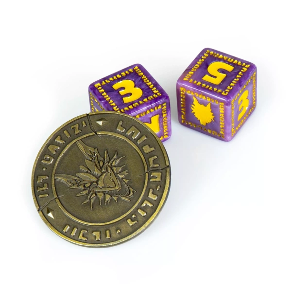 Zestaw ekskluzywnych komponentów do gry Karak. W limitowanym zestawie znajdują się 2 kości do gry Karak z głową smoka zamiast cyfry 6 oraz duży metalowy żeton klątwy.
