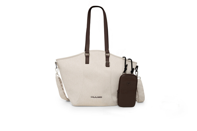 Stylowy nowy design torby z dodatkową małą torebką, którą podczas spacerów można zawiesić na teleskopowej rączce przy użyciu dodatkowych, regulowanych pasków.