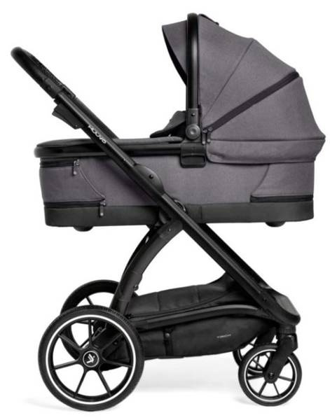 Wózek złożysz jedną ręką wraz ze spacerówką przodem lub tyłem do kierunku jazdy. Składa się do rozmiarów 59 cm x 58 cm x 33 cm i zawsze stoi na kołach.
