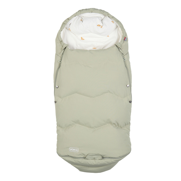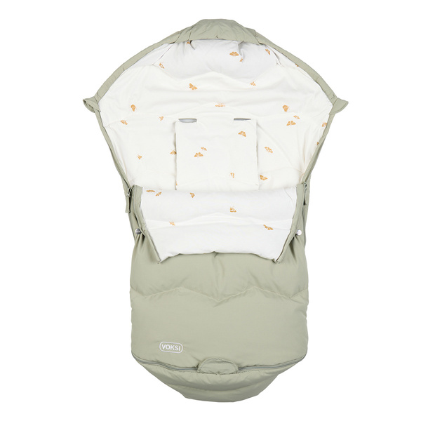 Śpiworek Voksi Explorer posiada tylną część odpinaną na rzepy, aby móc idealnie dopasować uprząż występującą w różnych produktach, takich jak wózek, fotelik, przyczepka rowerowa, itp.