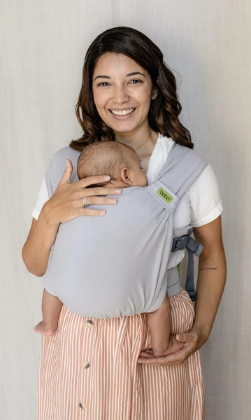 BOBA Bliss łączy w sobie dwie cechy: łatwość użycia i wygodę nosidełka z miękkością i elastycznością chusty do noszenia dziecka.