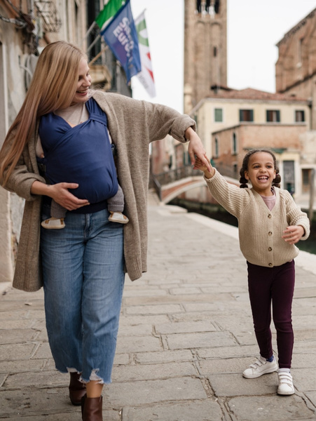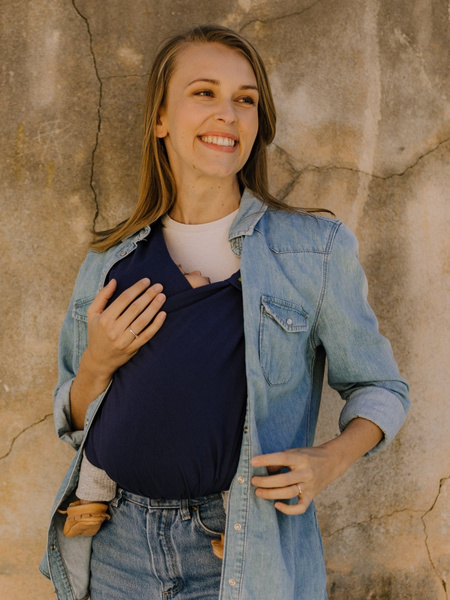 BOBA Bliss łączy w sobie dwie cechy: łatwość użycia i wygodę nosidełka z miękkością i elastycznością chusty do noszenia dziecka.