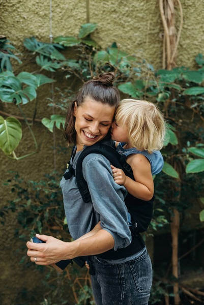 Wszechstronny design dopasuje się do każdej fazy noszenia dziecka, zarówno z przodu, jak i z tyłu. Został zaprojektowany, aby w pełni wspierać naturalną ergonomiczną pozycję dziecka, promując zdrowy rozwój bioder i kręgosłupa!