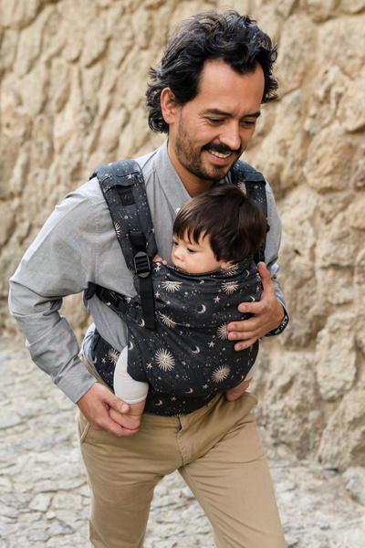 Wszechstronny design dopasuje się do każdej fazy noszenia dziecka, zarówno z przodu, jak i z tyłu. Został zaprojektowany, aby w pełni wspierać naturalną ergonomiczną pozycję dziecka, promując zdrowy rozwój bioder i kręgosłupa!