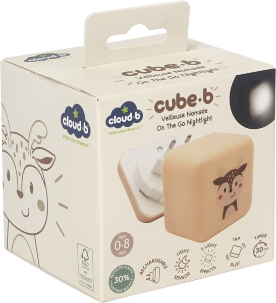 Cube B™ to wyjątkowa lampka nocna, która pomaga dziecku szybciej zasnąć i czuć się bezpiecznie. Jej dwuczęściowa konstrukcja pozwala na używanie jej jako przenośnej lampki lub po podłączeniu do gniazdka – jako stylowej, świecącej kostki, idealnej do pokoju dziecięcego.