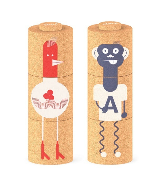 Elou Ekologiczne Klocki Korkowe - Układanka Piramida kogut/małpa 18m+