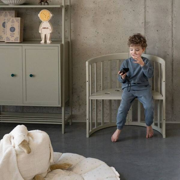 Łóżeczko owalne 7w1 zmienia się wraz z dzieckiem przez wiele lat i dostosowuje do jego potrzeb. Jeden produkt daje mnóstwo możliwości.