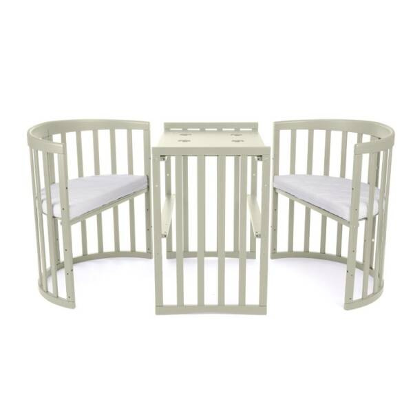 Mebelek sprawdzi się też jako miejsce do nauki lub zabawy. Stworzysz z niego komfortowy zestaw stolik + dwa krzesełka. Wysokość siedzisk i blatu jest regulowana, co pozwala na przygotowanie idealnego kącika dziecięcego. Jeżeli jednak Twoje dziecko nadal będzie chciało spać w swoim ulubionym łóżeczku, zachęcamy do zakupu rozszerzenia do łóżeczka 7w1. W takiej konfiguracji mebel zostanie z Wami nawet do 10 roku życia dziecka!