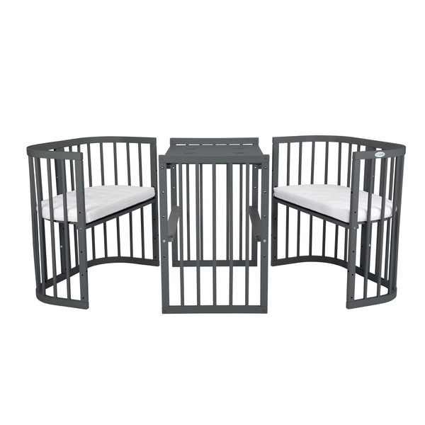 Mebelek sprawdzi się też jako miejsce do nauki lub zabawy. Stworzysz z niego komfortowy zestaw stolik + dwa krzesełka. Wysokość siedzisk i blatu jest regulowana, co pozwala na przygotowanie idealnego kącika dziecięcego. Jeżeli jednak Twoje dziecko nadal będzie chciało spać w swoim ulubionym łóżeczku, zachęcamy do zakupu rozszerzenia do łóżeczka 7w1. W takiej konfiguracji mebel zostanie z Wami nawet do 10 roku życia dziecka!