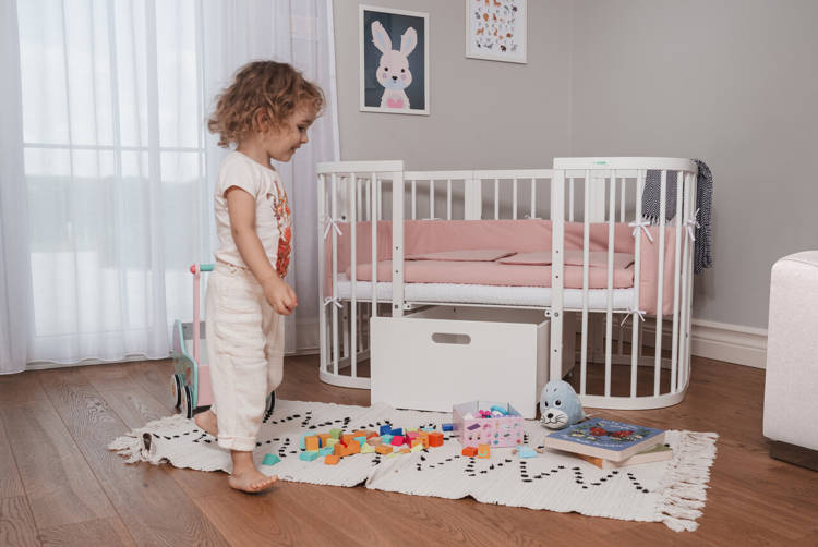 Im starsza jest pociecha, tym bardziej chce się usamodzielnić. Ten model 7w1 znacząco to ułatwi. W kilka chwil zmienisz go w duże łóżeczko zapewniające więcej wolnej przestrzeni. Mebel będzie już dobrze znany dziecku, dlatego zapewni mu poczucie bezpieczeństwa i komfort na wysokim poziomie. Łóżeczko nie musi być wyłącznie miejscem do spania. Po obniżeniu podłogi zmieni się w kojec do zabawy. Brak narożników pozwala na swobodną naukę wstawania i wspinania się po szczeblach.