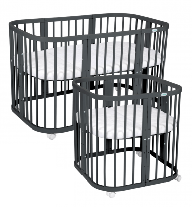 Łóżeczko owalne 7w1 zmienia się wraz z dzieckiem przez wiele lat i dostosowuje do jego potrzeb. Jeden produkt daje mnóstwo możliwości.