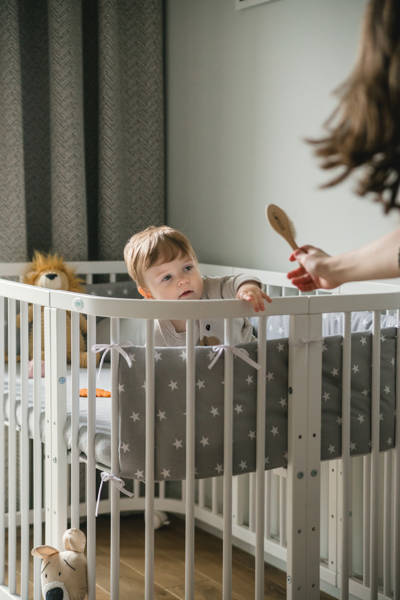 Im starsza jest pociecha, tym bardziej chce się usamodzielnić. Ten model 7w1 znacząco to ułatwi. W kilka chwil zmienisz go w duże łóżeczko zapewniające więcej wolnej przestrzeni. Mebel będzie już dobrze znany dziecku, dlatego zapewni mu poczucie bezpieczeństwa i komfort na wysokim poziomie. Łóżeczko nie musi być wyłącznie miejscem do spania. Po obniżeniu podłogi zmieni się w kojec do zabawy. Brak narożników pozwala na swobodną naukę wstawania i wspinania się po szczeblach.