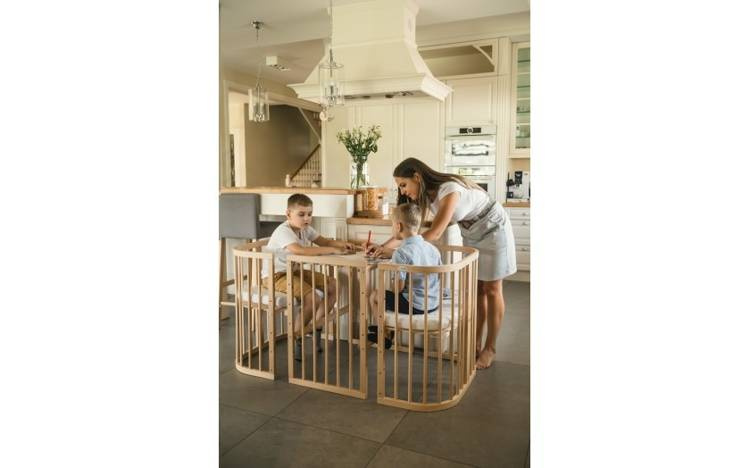 Mebelek sprawdzi się też jako miejsce do nauki lub zabawy. Stworzysz z niego komfortowy zestaw stolik + dwa krzesełka. Wysokość siedzisk i blatu jest regulowana, co pozwala na przygotowanie idealnego kącika dziecięcego. Jeżeli jednak Twoje dziecko nadal będzie chciało spać w swoim ulubionym łóżeczku, zachęcamy do zakupu rozszerzenia do łóżeczka 7w1. W takiej konfiguracji mebel zostanie z Wami nawet do 10 roku życia dziecka!