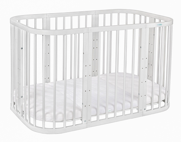 Łóżeczko owalne 7w1 zmienia się wraz z dzieckiem przez wiele lat i dostosowuje do jego potrzeb. Jeden produkt daje mnóstwo możliwości.