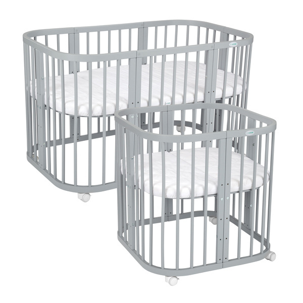 Łóżeczko owalne 7w1 zmienia się wraz z dzieckiem przez wiele lat i dostosowuje do jego potrzeb. Jeden produkt daje mnóstwo możliwości.
