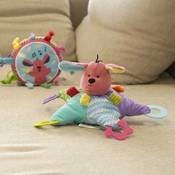 Materiały i uszy zabawki szeleszczą. Cała zabawka jest bardzo miła w dotyku i miękka, dlatego jest idealnym kompanem do przytulania! Dzięki przytulaniu dziecko rozwija się emocjonalnie i uczy się empatii.