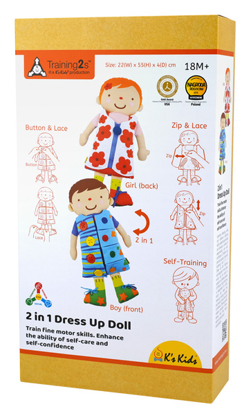 Nauka ubierania pomoże wzmocnić umiejętność samo opieki, wyrabia dobre nawyki i rozwija poczucie odpowiedzialności i pewności siebie. Dziecko może ćwiczyć zapinanie, wiązanie krawata i zapinanie guzików. Guziki są w dwóch wielkościach, dziecko może ćwiczyć zapinanie o różnych stopniach trudności. Są również zaprojektowane tak, by ułatwić dziecku ubieranie, wzmacniając jego pewność siebie. Umiejętność ubierania wyrabia ruchy precyzyjne dziecka, poprawia umiejętności motoryczne i koordynację wzrokowo-ruchową.