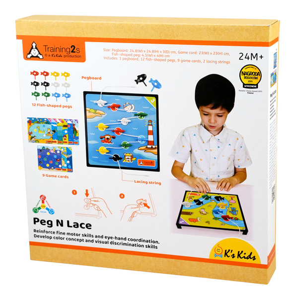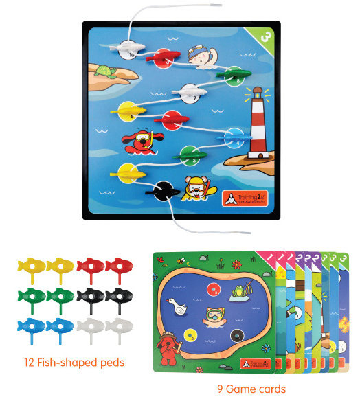 Ćwiczenie mięśni palców jest niezbędne do rozwijania umiejętności pisania. Labirynt rybki posiada planszę, 12 kolorowych rybek, 9 kart do gry o różnych poziomach zaawansowania i 2 sznurki. Najpierw, dziecko powinno umieścić kartę gry na planszy, następnie umieścić rybki w otwory o odpowiednich kolorach. Następnie dziecko powinno przewlec sznurki przez rybkę jedna po drugiej według podanej sekwencji. Dziecko może zacząć od najprostszych zadań i przejść do bardziej zaawansowanych. Gra przyczyni się do wzmocnienia zdolności motorycznych, koordynacji wzrokowo-ruchowej i rozpoznawania kolorów.