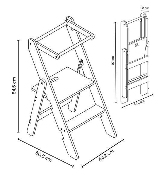 Ten model Kitchen Helpera ma jednak cechę, o której nie sposób nie wspomnieć. Jest SKŁADANY! Co więcej - po złożeniu jest najmniejszym Kitchen Helperem na rynku! Jego wyjątkowa konstrukcja umożliwia łatwe składanie i przechowywanie, co czyni go idealnym rozwiązaniem nawet dla niewielkich przestrzeni kuchennych. Dzięki temu, Twoje dziecko może być bezpieczne i aktywne w kuchni, a Ty zyskujesz więcej miejsca na codzienne czynności.