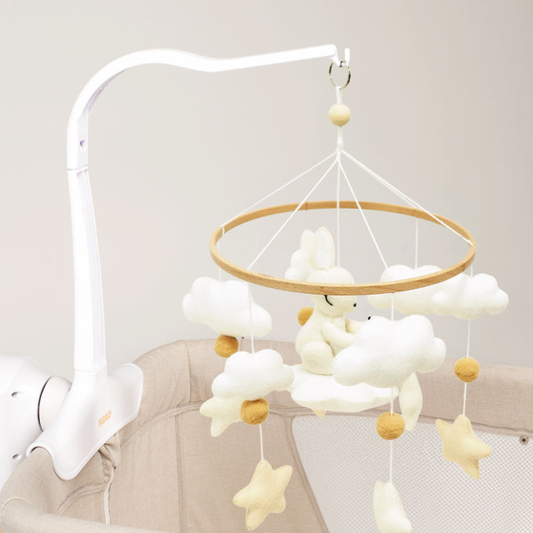 Neno Bani to ręcznie robiona karuzela do łóżeczka, która łączy nowoczesny design ze skandynawską prostotą. Delikatnie kołyszące się gwiazdki, chmurki i zajączki przyciągają wzrok maluszka, wspierając rozwój koncentracji i koordynacji wzrokowo-ruchowej już od pierwszych dni życia. Miękkie, filcowe maskotki tworzą przytulną atmosferę, a lekka konstrukcja z łatwym montażem sprawia, że karuzela idealnie pasuje do każdego dziecięcego wnętrza.