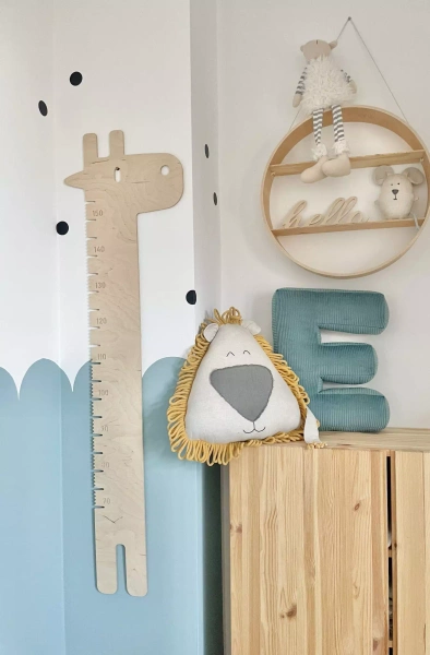 W pierwszych latach życia dziecka “gołym okiem” widzimy jego gwałtowny, fizyczny wzrost. Warto jednak zachować te chwile na dłużej. Drewniana miarka wzrostu w kształcie żyrafy wpasuje się w każde wnętrze. Na jej powierzchni możemy bez przeszkód zaznaczać etapy rozwoju dziecka, by po latach wrócić wspomnieniami do cudownych chwil dzieciństwa.