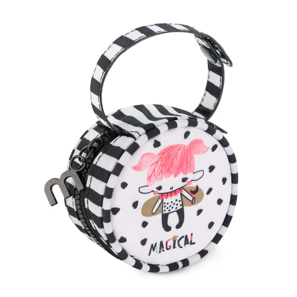 Zawiera uchwyt zakończony przyciskiem, dzięki któremu etui można przymocować do kołyski, łóżeczka, wózka lub torebki. W ten sposób zawsze masz go pod ręką.