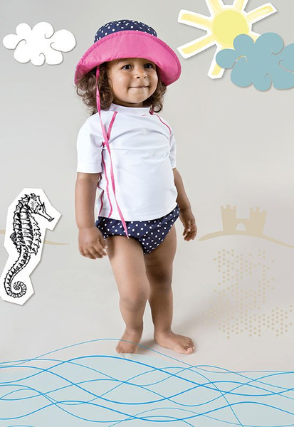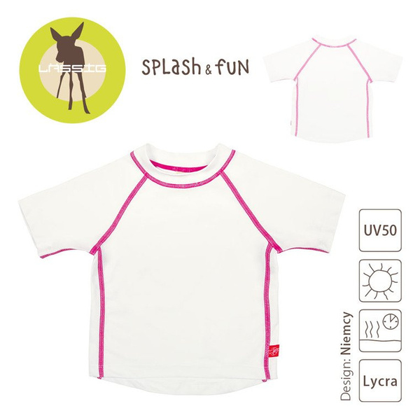 Koszulka typu T-shirt z krótkim rękawkiem wyposażona w ochronę UV. Znakomicie pasuje do pieluszek do pływania, z tej samej kolekcji LASSIG. Wykonana została z wyjątkowo delikatnej i elastycznej lycry i posiada filtr UV 50+. Dzięki tej ochronie przed słońcem beztroskie zabawy w wodzie są naprawdę bezpieczne. Oczywiście konieczne jest również użycie mleczka do opalania z filtrem.