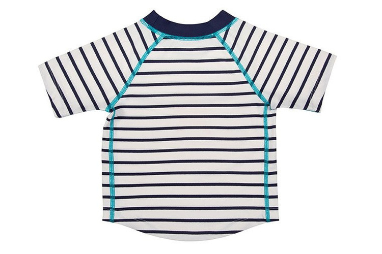 Koszulka typu T-shirt z krótkim rękawkiem wyposażona w ochronę UV. Znakomicie pasuje do pieluszek do pływania, z tej samej kolekcji LASSIG. Wykonana została z wyjątkowo delikatnej i elastycznej lycry i posiada filtr UV 50+. Dzięki tej ochronie przed słońcem beztroskie zabawy w wodzie są naprawdę bezpieczne. Oczywiście konieczne jest również użycie mleczka do opalania z filtrem.