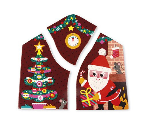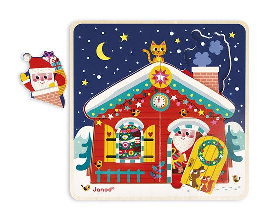 Puzzle 3 w 1!Zestaw puzzli francuskiej marki JANOD składa się z trzech układanek, przedstawiających dom w scenerii Świątecznej, które układa się na sobie warstwowo. Dziecko odtwarza historię wieczoru Gwiazdkowego, używając 2, 3 i 6 elementów układanki. Układanka wykonana z drewna. Opakowanie dekoracyjne.