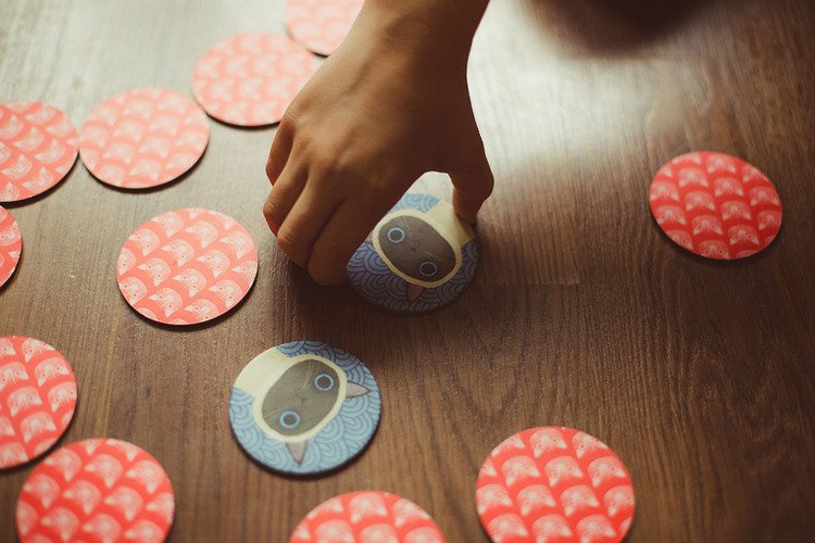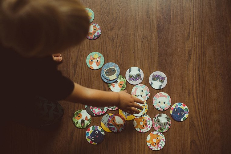 Gra Mini Memory Koty amerykańskiej marki MUDPUPPY składa się 12 par okrągłych kart, które należy skompletować. Parę tworzą dwie identyczne ilustracje. Karty mają przyjemne dla oka kolory i przedstawiają urocze koty. Autorką ilustracji jest miłośniczka kotów i normandzka artystka Angie Rozelaar. Karty zostały wykonane z solidnego kartonu, pochodzącego z recyklingu. Gra memory to wspaniała zabawa, zarówno dla dzieci, jak i dorosłych. Ćwiczy pamięć, uczy cierpliwości i skupienia. Zapakowana jest w estetyczne pudełko. Idealnie nadaje się na prezent.