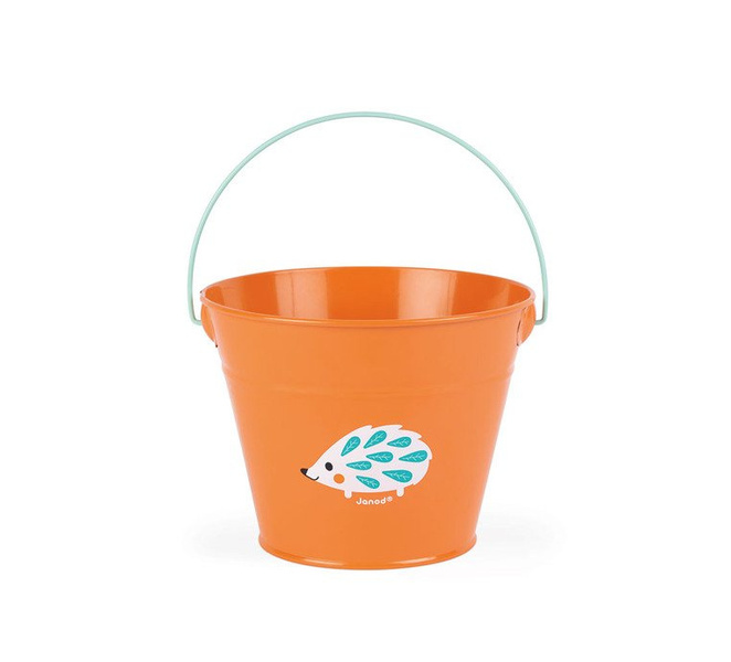 Metalowe wiaderko z serii Mały ogrodnik francuskiej marki JANOD to idealna zabawka dla dziecka, lubiącego aktywność w ogrodzie i naśladowanie dorosłych. Ma intensywny pomarańczowy kolor z motywem uroczego jeżyka oraz poręczny niebieski uchwyt, który ułatwia dziecku przenoszenie. Wiaderko jest lekkie i jednocześnie wystarczająco pojemne – dostosowane do możliwości małego dziecka. Jest trwałe i estetycznie wykonane. Idealnie nadaje się na prezent.