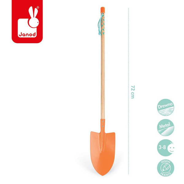 Duży metalowy szpadel z serii Mały ogrodnik francuskiej marki JANOD to idealna zabawka dla dziecka, lubiącego aktywność w ogrodzie i naśladowanie dorosłych. Szpadel jest w kolorze pomarańczowym, ma długą drewnianą rączkę, dostosowaną do wzrostu i możliwości małego dziecka. Lekki i poręczny, zachęca do włączenia się w obowiązki dorosłych, np. sadzenie krzewów czy przekopywanie grządek. Jest trwały i estetycznie wykonany. Idealnie nadaje się na prezent.