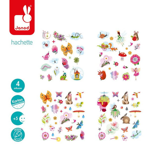 Zestaw naklejek Pokaz mody Wróżki francuskiej marki JANOD sprawi wiele radości każdej dziewczynce. W skład zestawu wchodzą 4 arkusze pełne mniejszych i większych kolorowych „wróżkowych” wzorów, m.in.: ptaków, motylków, żabiego księcia czy leśnej flory, którymi można ozdabiać wybrane powierzchnie. Zabawa naklejkami uczy rozpoznawania i segregowania elementów, ćwiczy zdolności manualne oraz precyzję ruchów, a przy okazji dostarcza wrażeń estetycznych i jest wstępem do kreowania przestrzeni wokół siebie. Zabawkę zaprojektowano we Francji we współpracy z francuską grupą mediową i wydawniczą Hachette. Zapakowana jest w ładną torebeczkę z okienkiem i zawieszką. Idealnie nadaje się na prezent.