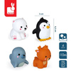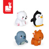 Zestaw uroczych zwierzątek polarnych francuskiej marki JANOD to 4 wytrzymałe zabawki z wodoodpornego tworzywa. W skład kompletu wchodzą: biały niedźwiedź, renifer, pingwin i foka. Wszystkie są poręczne i przyjemne w dotyku. Ściśnięte pod wodą, napełniają się, a po ich ponownym naciśnięciu, tryskają wodą. Mają intensywne, ładne kolory. Tworzenie opowieści o ich przygodach to doskonały sposób na wyciszenie i idealny umilacz czasu, spędzanego w wannie. Zabawkę zaprojektowano we Francji. Zapakowane jest w estetyczne pudełko z uchwytem. Idealnie nadaje się na prezent.