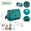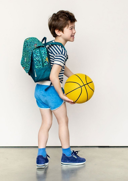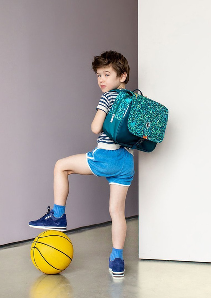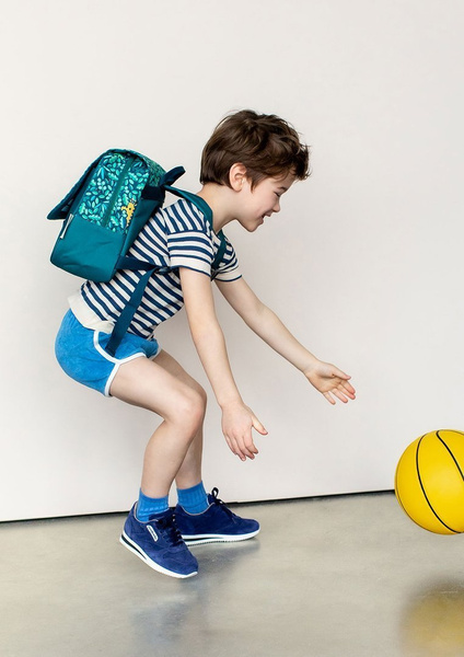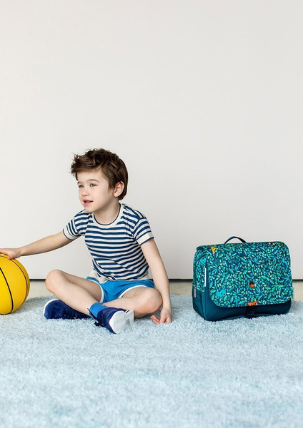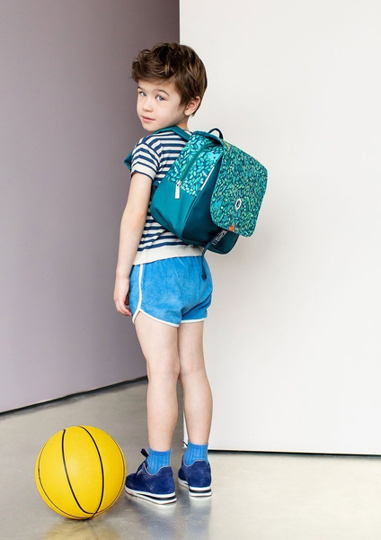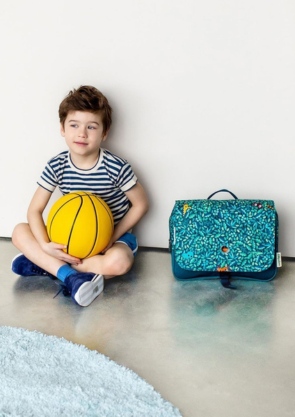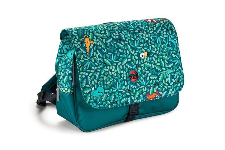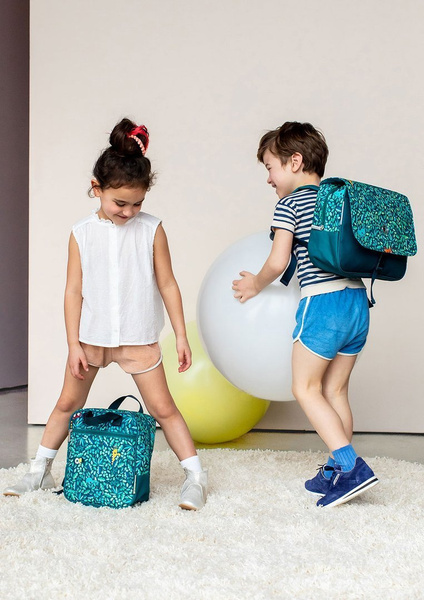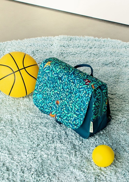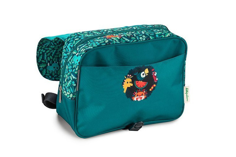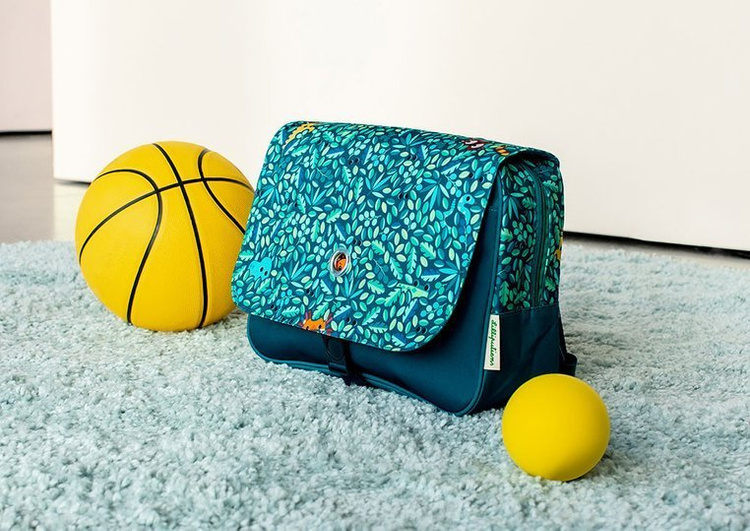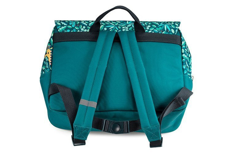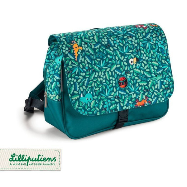 Uroczy i poręczny tornister z kolekcji Dżungla z linii produktów Przyjaciele w podróży belgijskiej marki Lilliputiens. Funkcjonalny, lekki i wygodny, idealny do przedszkola czy pierwszej klasy, pomieści zeszyty, książki czy teczki formatu A4. Tornister ma ciekawy design – utrzymany jest w kolorach turkusowym, zielonym i granatowym, wyróżnia go gęsty roślinny wzór i ukryte w nim postacie zwierzątek, charakterystycznych dla marki, m.in. tukana Pabla czy Lwa Jack'a. Plecak posiada szeroką komorę główną na suwak, a wewnątrz niej jedną mniejszą kieszonkę i drugą boczną – np. na butelkę z napojem. Na froncie pod zapinaną na zatrzask klapą znajduje się kolejna kieszonka, a po wewnętrznej stronie klapy – miejsce na wpisanie danych dziecka i numeru kontaktowego rodzica. Tornister ma szerokie, u góry miękkie, grubsze szelki z regulacją długości i elementem odblaskowym. Z przodu na klatce piersiowej jest dodatkowy pasek stabilizujący i odciążający plecy, zapinany na łatwy w obsłudze zatrzask. W górnej części znajduje się uchwyt do zawieszenia, np. na haczyku w szatni. Plecak uszyto z wysokiej jakości materiałów, miękkich, łatwych do czyszczenia i odpornych na wilgoć. Jest perfekcyjnie wykończony, z dbałością o każdy szczegół i w pełni bezpieczny dla dziecka.