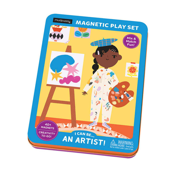 Zestaw magnesów do tworzenia postaci Mogę zostać... artystką! amerykańskiej marki MUDPUPPY to wyjątkowo kreatywna zabawka dla dzieci od 4. roku życia (kierowana głównie do dziewczynek). Na 2 tłach, na wewnętrznych stronach metalowego pudełka, znajdują się pracownie, które można urządzać według własnych potrzeb. Dwie postacie – dziewczynki – można ubierać w wybrane stroje i wyposażać zgodnie z tym, co podpowie wyobraźnia – każda z nich może zostać malarką, projektantką, tancerką, kompozytorką lub kimkolwiek tylko zechce. W zestawie znajduje się ponad 40 magnesów z elementami ubioru i innymi dodatkami (instrumentami, farbami itp.), które to umożliwią. Zabawka ma poręczny format, sprawdza się w domu i w podróży. Zapakowana jest w estetyczne, metalowe pudełko. Doskonale nadaje się na prezent.