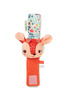 Pluszowa grzechotka na zwijanej bransoletce Sarenka Stella belgijskiej marki Lilliputiens to niebanalna aktywizująca zabawka dla niemowląt. Miękka, kolorowa, uszyta z bawełny, bransoletka jest zapinana na rzep i można ją założyć na rączkę lub nóżkę maluszka. Szeleści przy pocieraniu. Zdobi ją główka – grzechotka ślicznej rudo-różowej Sarenki Stelli ze stymulującymi sensorycznie uszkami, różkami i tasiemkami. Zabawka rozwija małą motorykę (potrząsanie), aktywizuje zmysł słuchu (szeleści, grzechocze), wzroku i dotyku. Grzechotka wykonana została z jersey'u i elanobawełny organicznej oraz wypełniona poliestrem z recyklingu.