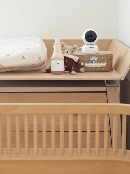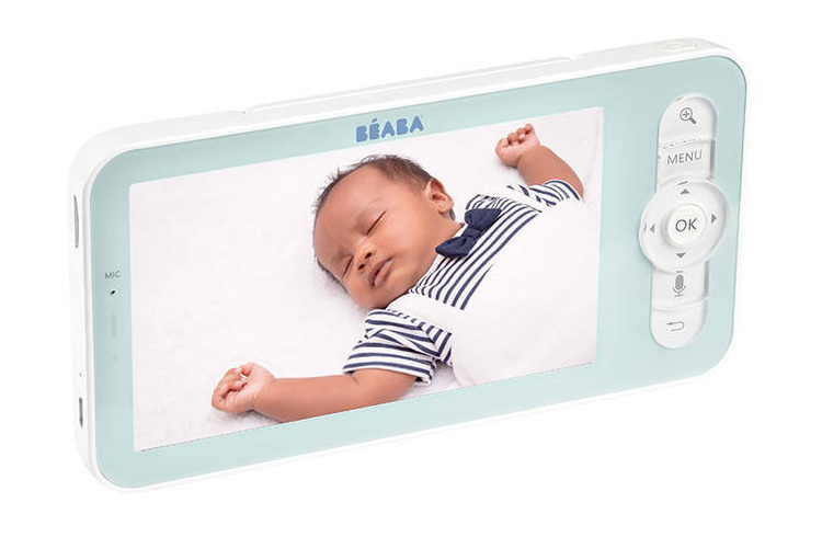 Niania elektroniczna z funkcją video ZEN PREMIUM francuskiej marki BEABA to komplet funkcjonalnych i bardzo praktycznych urządzeń – odbiornika z kamerką oraz wyświetlacza. Oba mają niewielkie, poręczne rozmiary, piękny design, neutralne kolory (biel i pastelowa zieleń) i zasięg do 300 metrów na zewnątrz i 50 metrów w pomieszczeniu. Odbiornik z kamerką jest odporny na wilgoć i wodę. Ma mikrofon, czujnik dźwięku i ruchu, inteligentny alarm VOX uruchamiany głosem dziecka, zapewnia panoramiczny widok (szerokokątna kamera obraca się w zakresie 360° i zapewnia jakość 1080p FULL HD), posiada także funkcję noktowizora (można zatem wyraźnie widzieć dziecko w nocy lub w ciemnym pokoju). Komfort i spokój o bezpieczeństwo Twojego maluszka gwarantuje również doskonała jakość obrazu na ekranie – HD 720p. Obsługa urządzenia jest prosta i intuicyjna, ma ono interfejs z opcjami dodatkowymi, np. timerem posiłków, funkcją krótkofalówki, białym szumem, 3 uspokajającymi kołysankami, termometrem z czujnikiem temperatury i wilgotności powietrza oraz dwukrotnym i czterokrotnym zoomem.