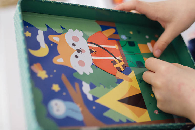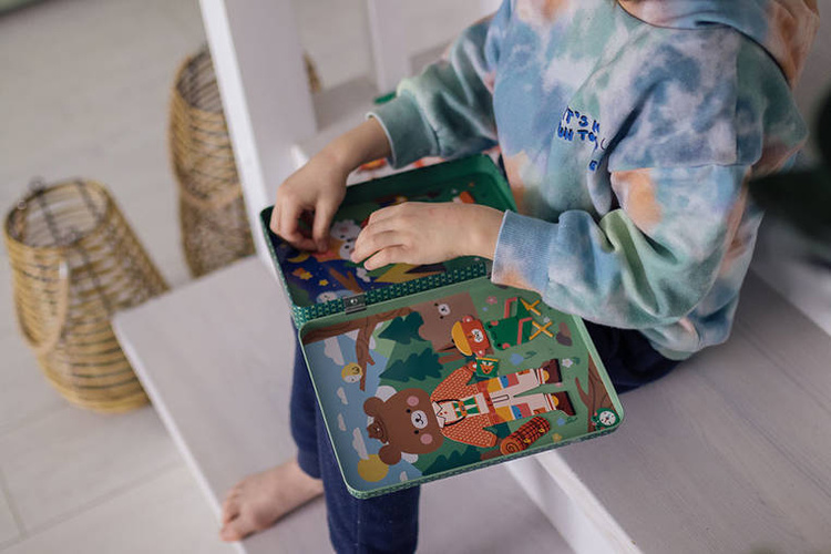 Autorką grafik jest francuska ilustratorka i autorka komiksów o pseudonimie Niniwanted. Zabawka ma poręczny format, sprawdza się w domu i w podróży. Zapakowana jest w estetyczne, metalowe pudełko. Doskonale nadaje się na prezent.