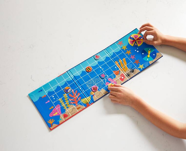 Składana plansza stanowi jednocześnie opakowanie gry. Ponadto dzięki poręcznemu rozmiarowi i magnetycznym elementom sprawdza się wspaniale w podróży. Autorką ilustracji jest hiszpańska artystka, miłośniczka książek i pieszych wędrówek – Teresa Bellon. Zabawka idealnie nadaje się na prezent.