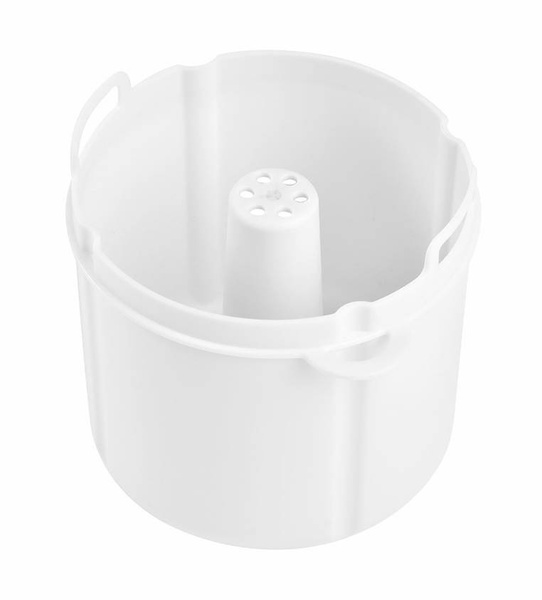 Koszyczek do gotowania ryżu/makaronu francuskiej marki Beaba stanowi przydatne uzupełnienie wielofunkcyjnego urządzenia do miksowania i gotowania na parze Babycook® Express. Pozwala on w zdrowy, wygodny i prosty sposób przygotować odpowiednią ilość produktów skrobiowych do dziecięcego posiłku. Przeznaczony jest do gotowania niewielkich porcji – już od 50 g – ryżu, makaronu, kasz, zbóż czy też np. soczewicy. Naczynie ma pojemność 850 ml i wykonane jest z bezpiecznej i higienicznej stali nierdzewnej. Wewnętrzny „kominek” z otworami gwarantuje odpowiedni przepływ pary podczas gotowania. Ergonomiczna, nienagrzewająca się rękojeść w kolorze białym ułatwia obsługę naczynia, także jedną ręką.