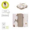 Bawełna muślinowa to jedna z najdelikatniejszych tkanin na świecie, bezpieczna dla skóry niemowląt. Muślin jest oddychający, a jego otwarty splot i lekkość zmniejszają ryzyko przegrzania dziecka, zapewniając jednocześnie komfort. Dodatkowo jest bardzo trwały i ultramiękki.