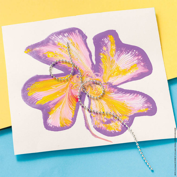 Zestaw kreatywny do malowania sznurkiem i łańcuszkiem z serii I love creativity francuskiej marki JANOD zawiera 5 projektów do wykonania – 5 plansz-płócien, na których można stworzyć niezwykłe obrazy według dołączonych wzorów. 4 buteleczki z farbami, a także sznurek, łańcuszek i drewniany patyczek pozwalają na wykonanie wyjątkowych ilustracji kwiatów, owadów czy ptaków nowo poznanymi technikami. Ponadto sprytne opakowanie zestawu może stać się ramką 3D dla skończonego obrazka. Malowanie łańcuszkiem czy sznurkiem to dla dziecka długie godziny angażującej i jednocześnie uspokajającej, wyciszającej zabawy, a gotowe dzieła zapewnią emocjonującą rozrywkę dla kilkorga dzieci, a nawet dla dorosłych. Zestaw zaprojektowano we Francji. Idealnie nadaje się na prezent.