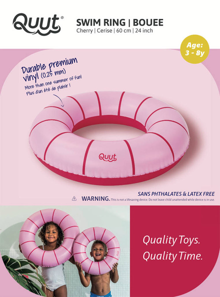 Małe kółko do pływania belgijskiej marki Quut to praktyczne rozwiązanie, zapewniające dzieciom bezpieczną wodną rozrywkę, na plaży, w basenie, w ogrodzie lub na tarasie. Przeznaczone jest dla maluszków od 18. miesiąca życia do 4. roku życia (UWAGA: wyłącznie pod opieką dorosłych!). Wykonane z bardzo wytrzymałego winylu, zachwyca niebanalnym designem i kolorystyką. Ma piękne, intensywne kolory: dół jest ciemnoróżowy, a góra – jasnoróżowa w wąskie ciemnoróżowe paseczki. Kółko jest idealne do oswajania malucha z wodą, wstępu do nauki pływania czy relaksu na świeżym powietrzu. Zachęca do aktywności outdoorowych, zdobywania nowych doświadczeń i umiejętności.